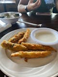 Hand-battered pickle spears, deep-fried crispy, and served with ranch dressing.