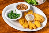 Strips of catfish lightly battered with cornmeal and deep-fried to a golden brown. Served with tartar sauce.